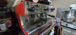 Cafetera profesional de color rojo, ideal para negocios. - Diseño robusto y elegante. - Acabado en acero inoxidable y detalles rojos. - Múltiples grupos para preparar café. ********ENTREGA EN PERSONA*********