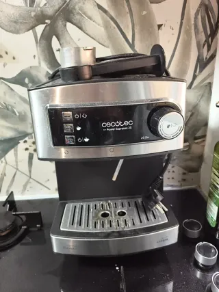 Cafetera Cecotec Power Espresso 20. Funciona perfectamente para hacer café, pero el vaporizador de leche no tiene buena presión. -Cafetera Express Manual de 850W -Presión 20 bares -Depósito de 1,5L -Brazo Doble Salida -Vaporizador -Superficie Calientatazas -Acabados en Acero Inoxidable