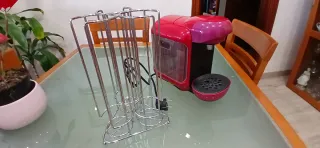 Se vende cafetera Tassimo en color rojo, junto con un práctico dispensador de cápsulas. - Cafetera Tassimo. - Dispensador de cápsulas.