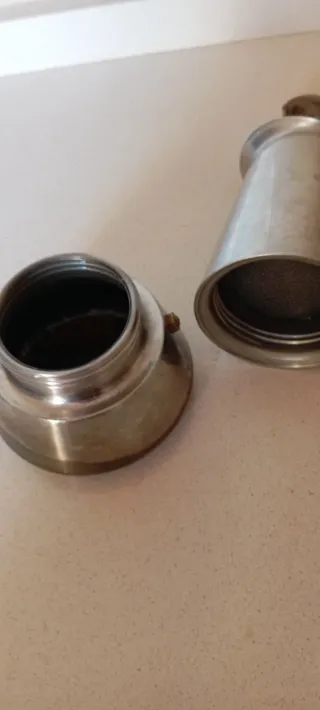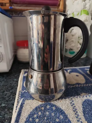 Cafetera italiana para una o dos tazas de acero inoxidable están buenas condiciones solo hay que darle un buen limpiado