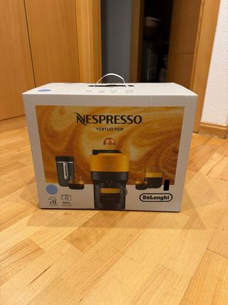 Cafetera Nespresso Vertuo POP en color azul. Viene en su caja original, sin utilizar. Nos compramos otra más grande y más adecuada a lo que queríamos, pero teníamos una igual y es muy cómoda, rápida y sencilla de usar. Se nos pasó la fecha de devolución.
