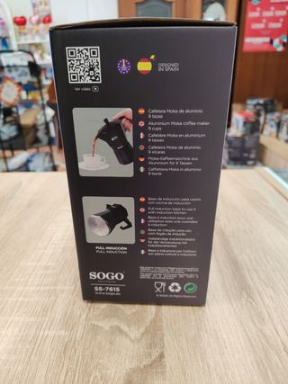Cafetera MoKa 9 Tazas SOGO de Aluminio Base de inducción para usarla con cocina de inducción Una forma tradicional de preparar café Perfecto para todos tipo de cocinas Gas, Eléctricas, Vitrocerámica e Inducción Producto Nuevo, Somos tienda física en Fuengirola Málaga Hacemos envíos a toda la península En mis otros artículos tenemos publicados de otros modelos y tamaños