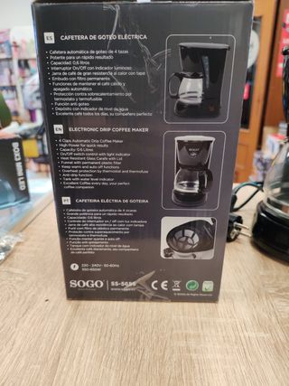 Cafetera de Goteo SOGO Cafetera automática de Goteo de 4 tazas Potente para un rápido resultado Capacidad de 0,6L Interruptor On/Off con indicador luminoso Jarra de Café d Gran resistencia al calor con tapa Embudo con filtro permanente Funciones de mantener el cafe cálido y apagado automático protección contra el sobrecalentamiento por termostato Función anti goteo Depósito con indicador de nivel de agua Producto Nuevo con Garantía Somos tienda física en Fuengirola Málaga y hacemos envíos a toda la península