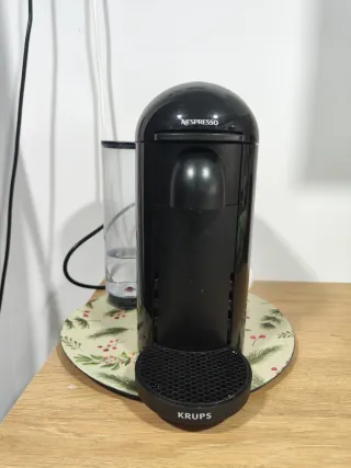 Cafetera Nespresso Vertuo de la marca Krups en color negro. - Diseño moderno y compacto. - Ideal para preparar café de calidad. Se le tiene hacer su descalificación, cuesta 13€ en Amazon o en la aplicación de Nespresso, la vendo porque me compré otra cafetera. Luego funciona perfectamente Recoger en Móstoles, en la última foto indica que le hace falta hacer su mantenimiento de descalificación, ahí que hacerlo cada 6 meses.