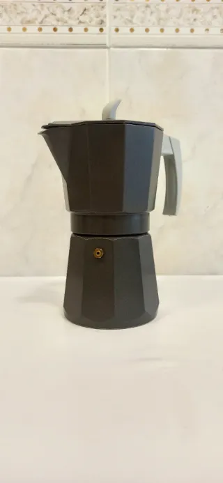 Cafetera italiana octogonal. Perfecta para preparar café. 9 tazas. - Asa ergonómica. - Válvula. Totalmente nueva. Nunca se ha usado porque mi placa es de inducción y no es compatible. Funciona con placas de gas, vitrocerámica, eléctrica y aluminio