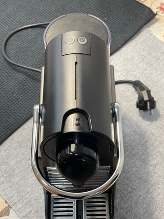 Cafetera Nespresso Krups INISSIA en color gris. Funciona perfectamente. Tiene roto el dispensador de agua por la parte superior, pero no afecta su funcionalidad. (se venden dispensadores a bajo coste)