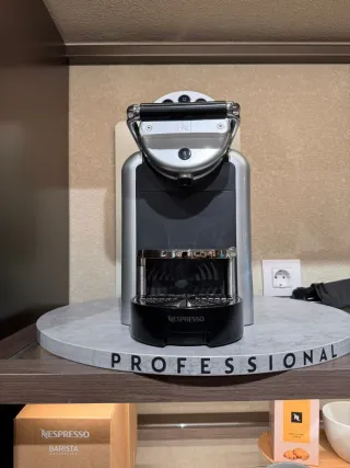 Cafetera Nespresso Zenius en acabado plateado y negro. Diseñada para un uso profesional. - Modelo Zenius. - Color plateado y negro. - Incluye base con diseño. - Texto PROFESSIONAL en la base. factura y garantía.