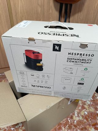 Cafetera Nespresso Krups Vertuo Next en caja. - Modelo Vertuo Next. - Marca Krups. - Incluye manual y accesorios. - 99% reciclable.