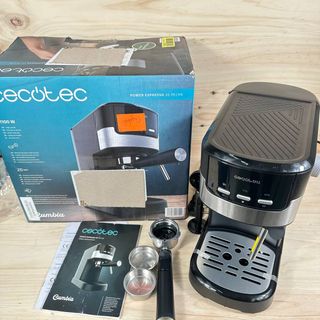 Cafetera Espresso Compacta Cecotec Power Espresso 20 Pecan, 1100W (como nueva, pequeño detalle: faltan ventosas de las patas pero no afecta a la estabilidad). Ofrece 20 bares de presión y un sistema Thermoblock que garantiza un calentamiento rápido y eficiente. Capacidad de 1,25 litros y brazo portafiltros con doble salida y 2 filtros. Esta cafetera permite preparar espresso de manera profesional en la comodidad de tu hogar. LPNWE349656581 cecotec, cafetera, espresso, compacta, power, pecan, 1100w, oferta, nuevo, barato.