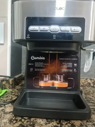 Cafetera de Cecotec modelo Power Espresso 20. - Diseño moderno en acero inoxidable. - Bomba de presión de 20 bares. - Vaporizador orientable para espumar leche. - Bandeja recogegotas extraíble. -tiene pocos usos y va perfecta -De accesorios tiene: la cuchara para el café, dos filtros de café para un espresso y otro filtro para dos Su precio original es de 69€