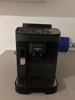 Cafetera Delonghi Magnífica Evo en buen estado. Se encuentra incompleta puesto que falta la boquilla del agua caliente y el depósito de la leche. Se puede usar solo para café y echar la leche a parte. En caso de que quieras, puedes comprar por ti mismo los repuestos. Son 50€. Puedes verlo en la última foto. Pero como ya he dicho, se puede usar solo para café. Cafetera hecha para servir café de grano molido. PVP: 450€. Debido a la falta de materiales la dejo a un precio bajo, para que si quieres, compres los repuesto y tengas completa una gran cafetera.