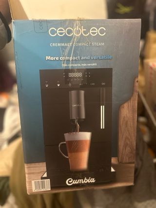 PRECIO NO NEGOCIABLE. DAÑADA. Tiene golpe en la pantalla pero funciona el táctil perfectamente. Inclye lo que se muestra en las fotos. A veces pone que no hay agua pero quitas el depósito y lo vuelves a poner o apagas y enciendes y ya la detecta. Lleva hechos 260 cafés. Cafetera Superautomática Cecotec Cremmaet Compactccino Connected. Disfruta del café de cafetería en casa con esta increíble cafetera superautomática de Cecotec! Compacta y con conectividad WiFi, es tu barista personal para preparar hasta 30 bebidas diferentes con solo pulsar un botón en su pantalla TFT o desde tu móvil.