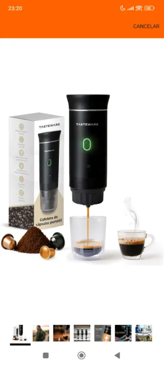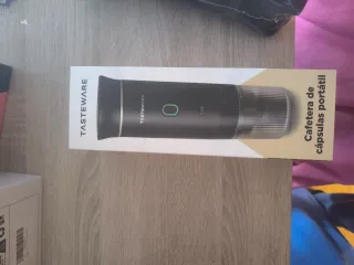 Cafetera portátil de la marca TASTEWARE, ideal para preparar café en cualquier lugar. - Compatible con Cápsulas Grandes y Pequeñas o con Café Molido. - Diseño compacto y ligero. - Recargable. - Color negro.