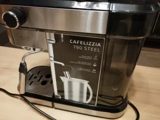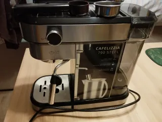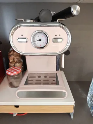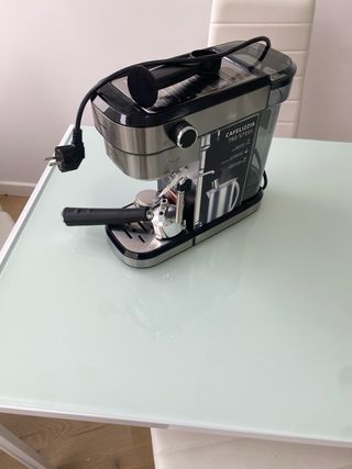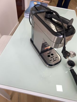 Cafetera de espresso con un diseño moderno y elegante, perfecta para preparar tu café favorito en casa. Su acabado en acero inoxidable le da un toque sofisticado. - Depósito de agua extraíble. - Bandeja de goteo. - Portafiltro. - Incluye accesorio para café molido. Poco uso, Comprada 24.06.2025 Dispone de garantía con el fabricante.