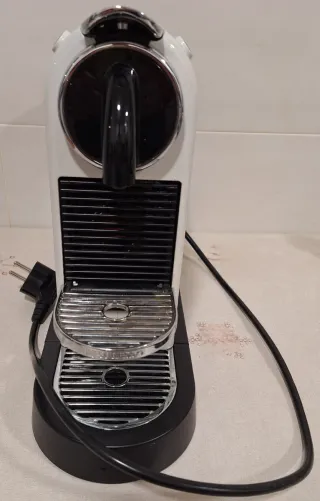 Cafetera Nespresso CitiZ en color blanco. Diseño moderno y compacto. - Bomba de alta presión (19 bares). - Depósito de agua extraíble. - Bandeja recogegotas abatible. Se podría incluir en el precio con algunas cápsulas de café si interesa. La cambio porque me regalaron una nueva.