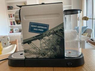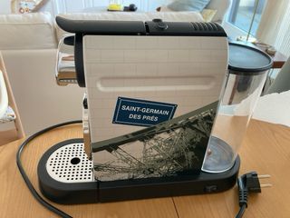 Cafetera Nespresso CitiZ con un diseño especial inspirado en Saint-Germain-des-Prés. - Diseño con motivos de la estación de metro Saint-Germain. - Acabado blanco con detalles gráficos. - En buen estado. El depósito de agua tiene una pequeña rozadura. - Regalo sistema riel para almacenaje de cápsulas