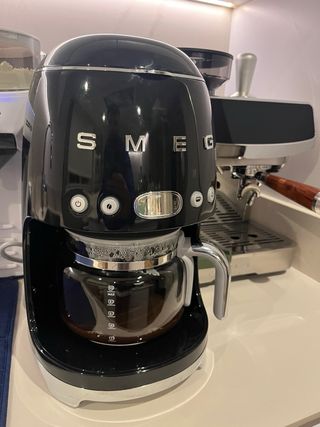 Cafetera de goteo Smeg en color negro. Diseño retro y elegante. - Jarra de cristal. - Filtro permanente. - Función mantener caliente.
