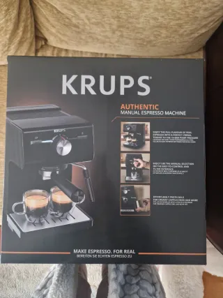Cafetera Krups XP381810 para preparar espresso. - Diseño compacto y elegante. - Presión de 15 bares para un espresso perfecto. - Fácil de usar con control manual. - Ideal para preparar capuchinos y otras bebidas.