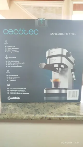 Cafetera de espresso Cecotec con acabado en acero inoxidable. Diseñada para preparar deliciosos cafés en casa. Hay que darle un golpe para que encienda, debe tener mal el contacto (fácil arreglo). - Diseño moderno y elegante. - Panel de control intuitivo. - Manómetro para control de presión. - Bandeja de goteo extraíble.