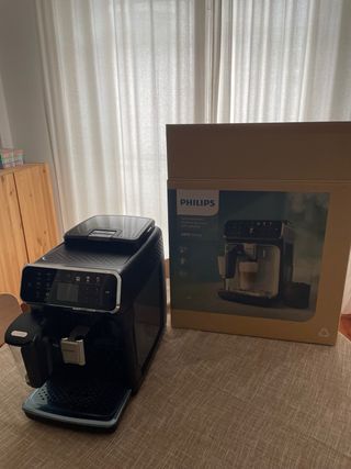 Cafetera superautomática Philips Serie 4400. Nueva, solo usada para probarla. Comprada en diciembre de 2025 como regalo de navidad con garantía del Corte Inglés. - Das a un botón y tienes el café listo con grano recién molido. - Sistema de autolavado. - Sistema latte & go para hacer cafés con leche con la leche espumada. - Diseño moderno en color negro. - Panel de control intuitivo.