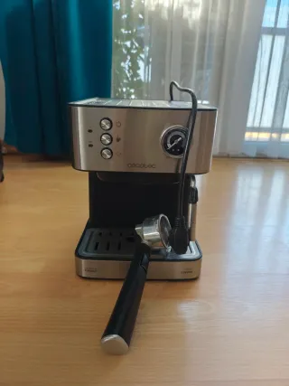 Cafetera de la marca Cecotec, con un diseño moderno y elegante. - Acabado en acero inoxidable. - Panel de control con botones. - Manómetro para controlar la presión.