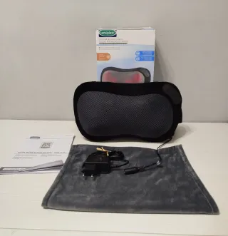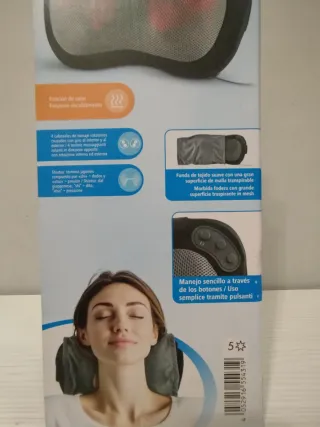 Cojín masajeador Shiatsu: - 4 cabezales de masaje rotatorios cruzados con gira al interior y al exterior. - Ideal para destensar y relajar músculos. - Función de calor conectable por separado. - Manejo sencillo - Con cinta de velcro para sujetar - Apagado automático a los 15 min. - Incluye funda extraíble y lavable a máquina. - 14'4 W.