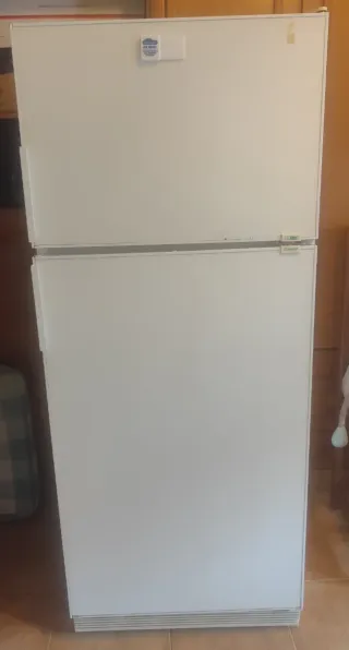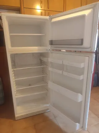 Frigorífico de color blanco, con congelador superior. - Diseño clásico y funcional. - Tiene mucho uso pero funciona perfectamente - 146 x 60 cm