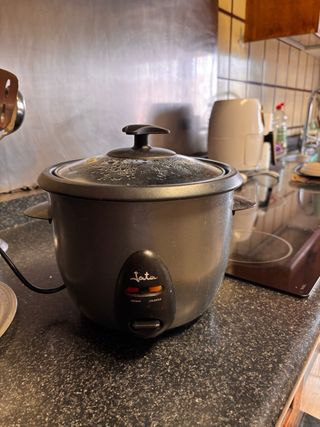 Arrocera Jata en buen estado. - Color gris oscuro. - Tapa de cristal con asa. - Panel de control con luces indicadoras.
