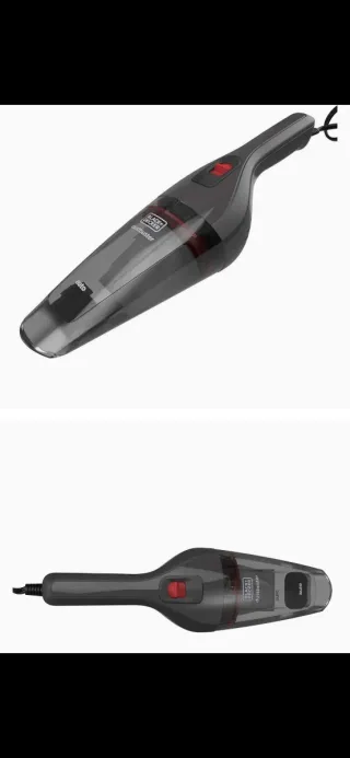 Aspirador de mano de la marca BLACK+DECKER. Para limpiar coche - Diseño ergonómico y ligero. - Depósito transparente. - Botón de encendido/apagado.