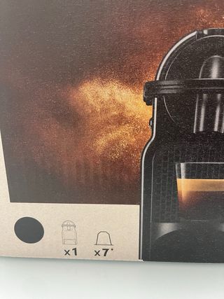 Cafetera Nespresso Inissia en color negro. Ideal para preparar tu café favorito. - Diseño compacto. - Incluye 1 cápsula de café. - Incluye 7 cápsulas de café.