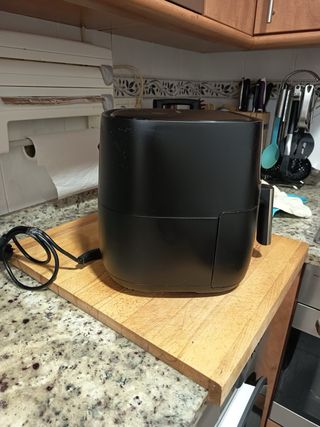 Freidora de aire cecotec con capacidad de 6.5 litros. Su diseño es moderno y funcional. Funciona perfectamente. Vendo por cambio a modelo de mayor capacidad - Color negro. - Asa plateada. - Base de madera incluida.