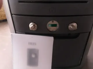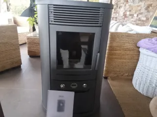 Caldera Edilkamin Iris en color negro y gris. 8kw Con sus años y funcionando perfectamente. - Diseño moderno y elegante. - Ventana frontal para visualización. - Panel de control frontal.