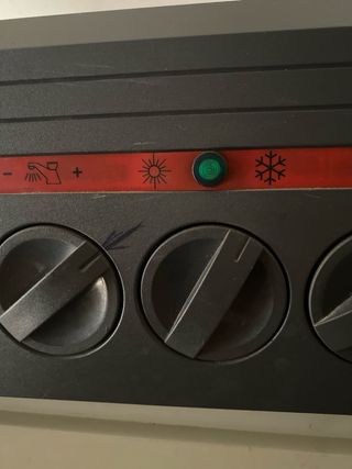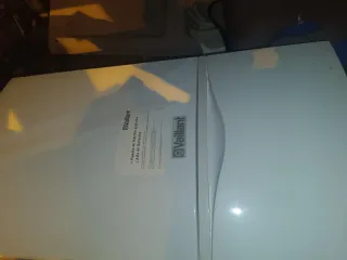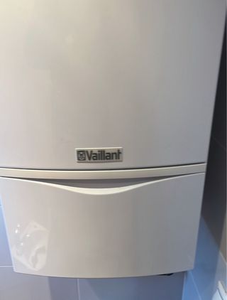 Caldera de la marca Vaillant. - Color blanco y beige. - Panel de control con diales verdes.