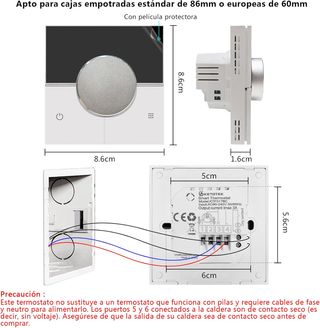 Termostato inteligente Meross para sistemas de calefacción de calderas, con conectividad WiFi. - Control remoto a través de la app Meross. - Programación horaria. - Compatible con asistentes de voz.
