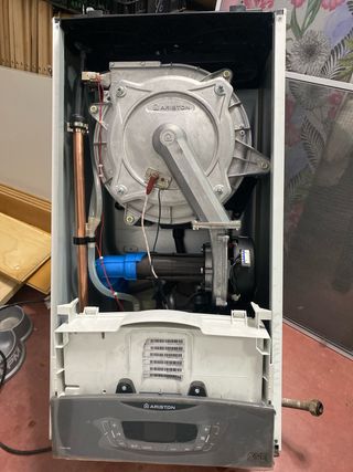 Vendo pack completo de calefacción de gama alta por cambio a aerotermia. Se trata de la caldera Ariston Clas One 35, el modelo más potente y eficiente de su serie (35 kW), ideal para viviendas grandes con alta demanda de agua caliente y calefacción. • Fabricada en 2023: Verificable por número de serie en la placa de características (SN: 23...). • Revisiones oficiales al día: Última revisión completa (eléctrica, gas y caldera) realizada en Diciembre de 2025 por TotalEnergies Facilita Plus. • Uso: Equipo seminuevo con muy poco tiempo de funcionamiento. Incluyo todos los manuales originales.