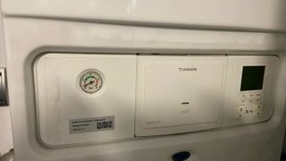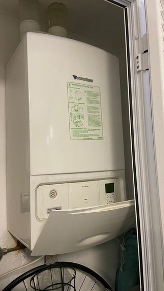 Caldera de la marca Vaillant. - Color blanco y beige.