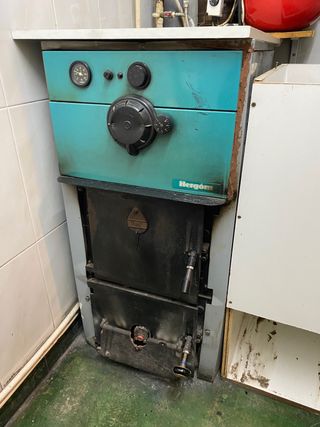 Caldera antigua Hergóm de fundición para laña y carbón y dos resistencias eléctricas instaladas. Una de ellas para sustituir. Se vende por cambio a gas natural. Instalda en una casa de 4 plantas. ideal para calentar quemando madera. También se venden las bombas a parte que son muy nuevas de la marca GRUNDFOS resto de accesorios consultar precio MEDIDAS: 51cm de ancho x 105 de alto y 60 de fondo Recogida en Hernani palabras no leer: calefaccion de leña, estufa, radiadores, biomasa, caserío, baserri, casa de campo, chalet, granja, fuego, caldera de hierro fundido, chimenea.