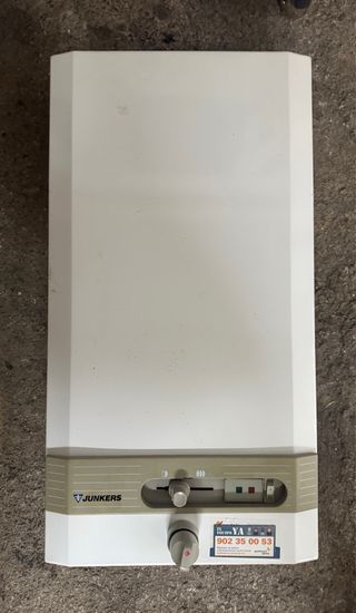 Calentador de gas natural de la marca Junkers. - Color blanco. - Modelo de alta eficiencia.