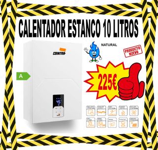 Calentador a gas Cointra modelo CPE 10 T, regulado para gas natural. - Capacidad de 10 litros. - Presión de gas: 20 mbar. - Etiqueta de servicio técnico Cointra incluida. - Practicamente nuevo