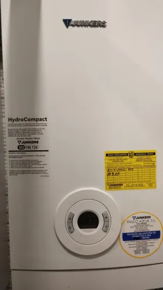 Calentador de gas natural Junkers HydroCompact. - Modelo HydroCompact. - Apto para gas natural. - Etiqueta de eficiencia energética. - Revisión obligatoria de aparatos a gas bienal.