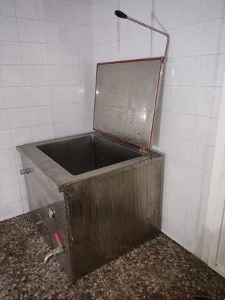 Tolva para caldera de pellets, aceituna, etc. de 200 kgr de capacidad, con bisinfin. No se hacen envios. Está en La Calahorra, Granada. 60 cm de ancho, 63 de fondo y 1.42 de alto, 80 mm de diametro.