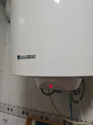 Calentador de agua Junkers en color blanco. - Diseño moderno y elegante. - Indicador luminoso de funcionamiento.