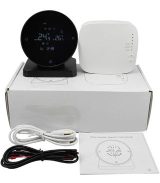Hasaller Smart Wireless RF433 Termostato de caldera montado en la pared, pantalla LCD, controlador de temperatura, control remoto, activacion por voz, ajustes programables para sistemas de calefaccion.