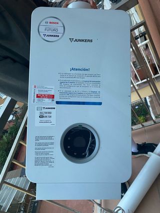 Caldera Junkers ZR 24-3 KDE 23 en funcionamiento: Jamas ha fallado y calienta 8 radiadores de casa con mucha potencia - Potencia de 24 kW. - Modelo ZR 24-3 KDE 23. Funcionando correctamente hasta el momento la cambio por reforma de cocina. Características: - Marca: Junkers - Modelo: ZR 24-3 KDE 23 - Potencia: 24 kW - Gas natural - Calefacción + agua caliente - Incluye conexiones y tuberías instaladas Estado - Funcionando al desmontar - Encendido correcto (se puede ver la llama en fotos)