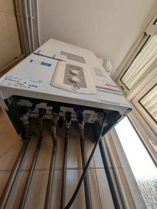 Caldera Chaffoteaux Pigma Green Evo 25 (2015) – FUNCIONANDO Vendo caldera de gas de condensación Chaffoteaux Pigma Green Evo 25, instalada en 2015 y en buen estado de funcionamiento. ✔️ Potencia: 25 kW (ideal para piso o vivienda media) ✔️ Calefacción + agua caliente sanitaria ✔️ Tecnología de condensación (más eficiente y menor consumo) ✔️ Pantalla digital y regulación sencilla ✔️ Mantenimiento al día (si aplica, puedes añadirlo) Es una buena oportunidad para quien necesite recambio o instalación económica. Se vende por cambio de instalación. 📍 Recogida en Cerdanyola de Valles ⚠️ Desmontaje hecho