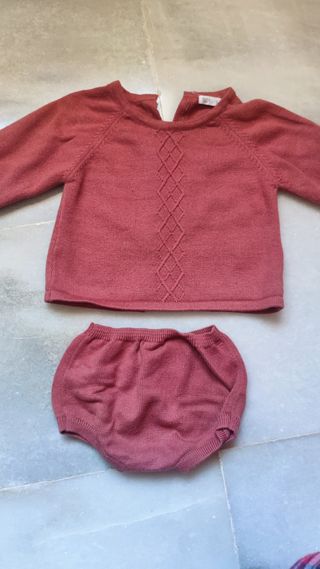 Conjunto de falda y jersey de la marca PDH. - Falda midi plisada tricolor talla L - Jersey a juego color caldera talla S ( talla grande) - Cintura elástica con rayas decorativas.