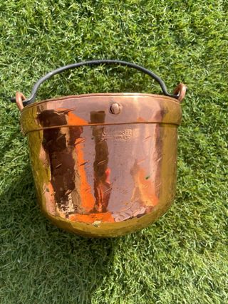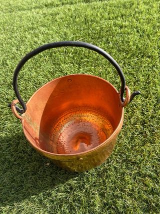 Pequeño caldero de cobre con asa. Diámetro: 20cms. Fondo: 20cms - Material: Cobre - Diseño: Con asa - Tamaño: Pequeño - tiene algún agujero