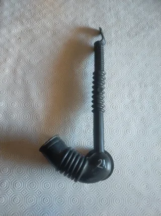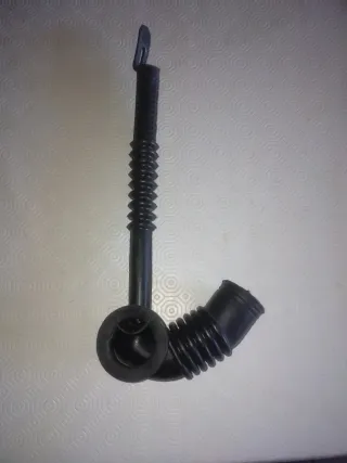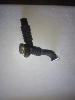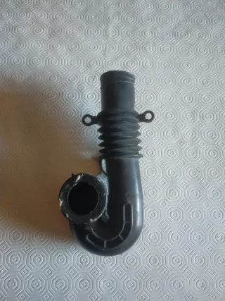 Manguito de goma para lavadora, conecta la jabonera a la cuba. - Material: Goma. - Color: Negro. - Diseño flexible y acanalado.