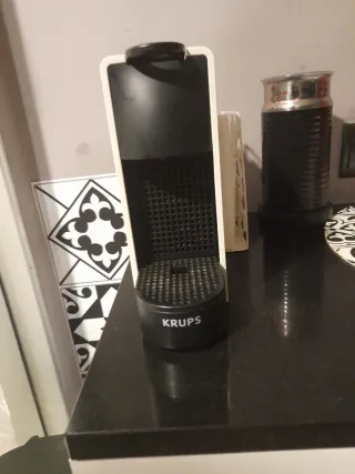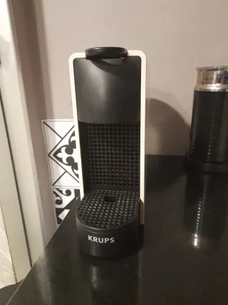 Cafetera Nespresso de la marca Krups. Diseño moderno y compacto. - Color blanco y negro. - Bandeja recogegotas. - Depósito de agua extraíble.