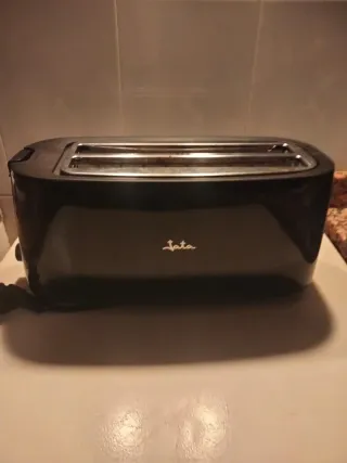 Tostadora de pan de la marca Jata en color negro. - Diseño moderno y compacto. - Acabado brillante. - Tiene algunos roces